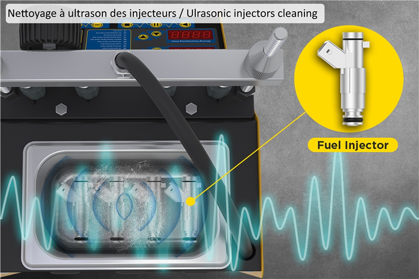 Les injecteurs doivent donc être nettoyés régulièrement et l’une des méthodes les plus efficaces consiste à les immerger dans un bac ultrasonique afin de les nettoyer en profondeur.